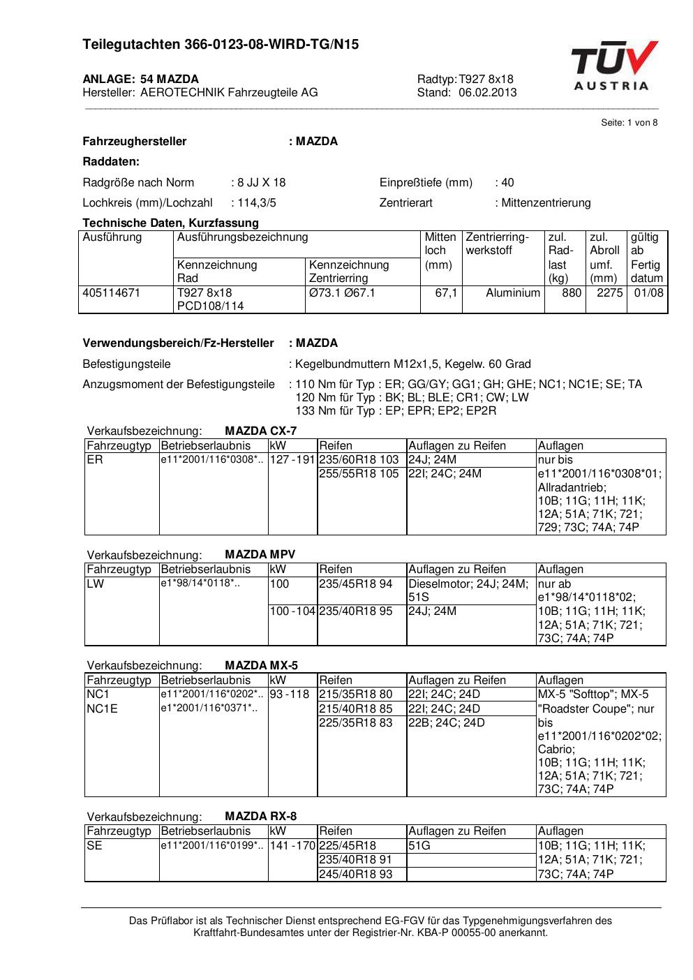 teilegutachten au ATS T927 8x18