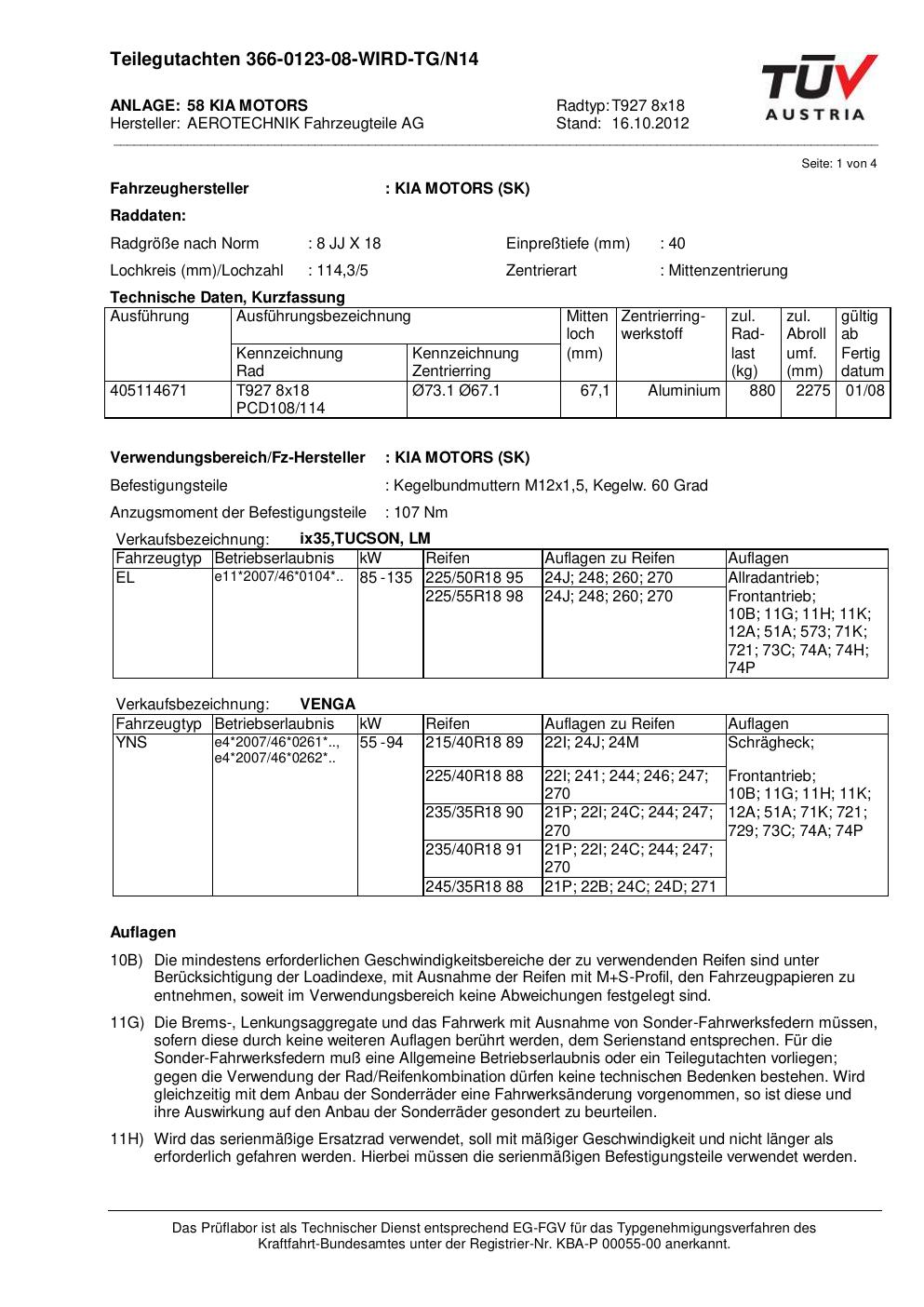 teilegutachten au ATS T927 8x18