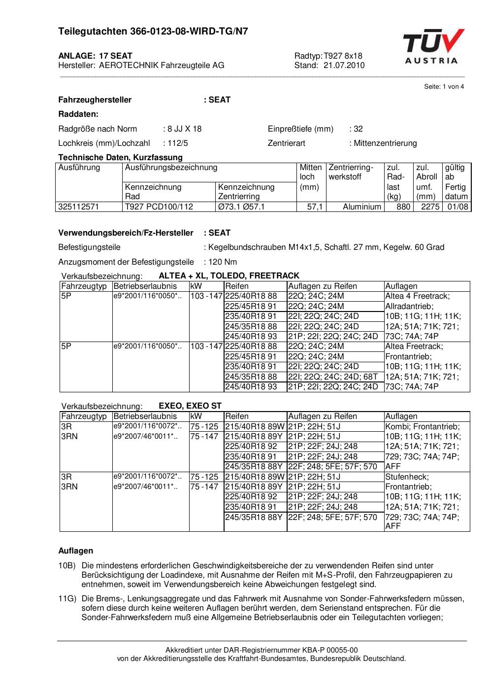 teilegutachten au ATS T927 8x18