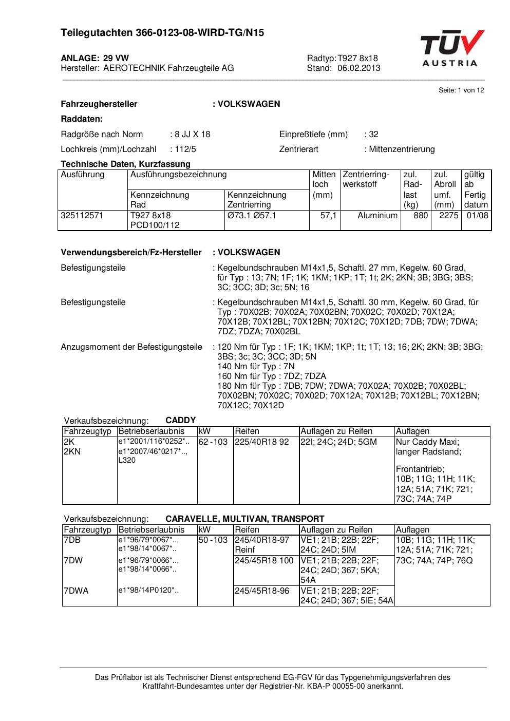 Dieses Gutachten (teilegutachten) bezieht sich auf die Alufelge ATS T927 8x18 in der Ausführung 8Jx18 ET 0, Mittenloch 0 mm . Im PDF findest du typischerweise zulässige Reifengrößen, Auflagen/Anbauhinweise und – je nach Dokument – Hinweise zur Eintragung.