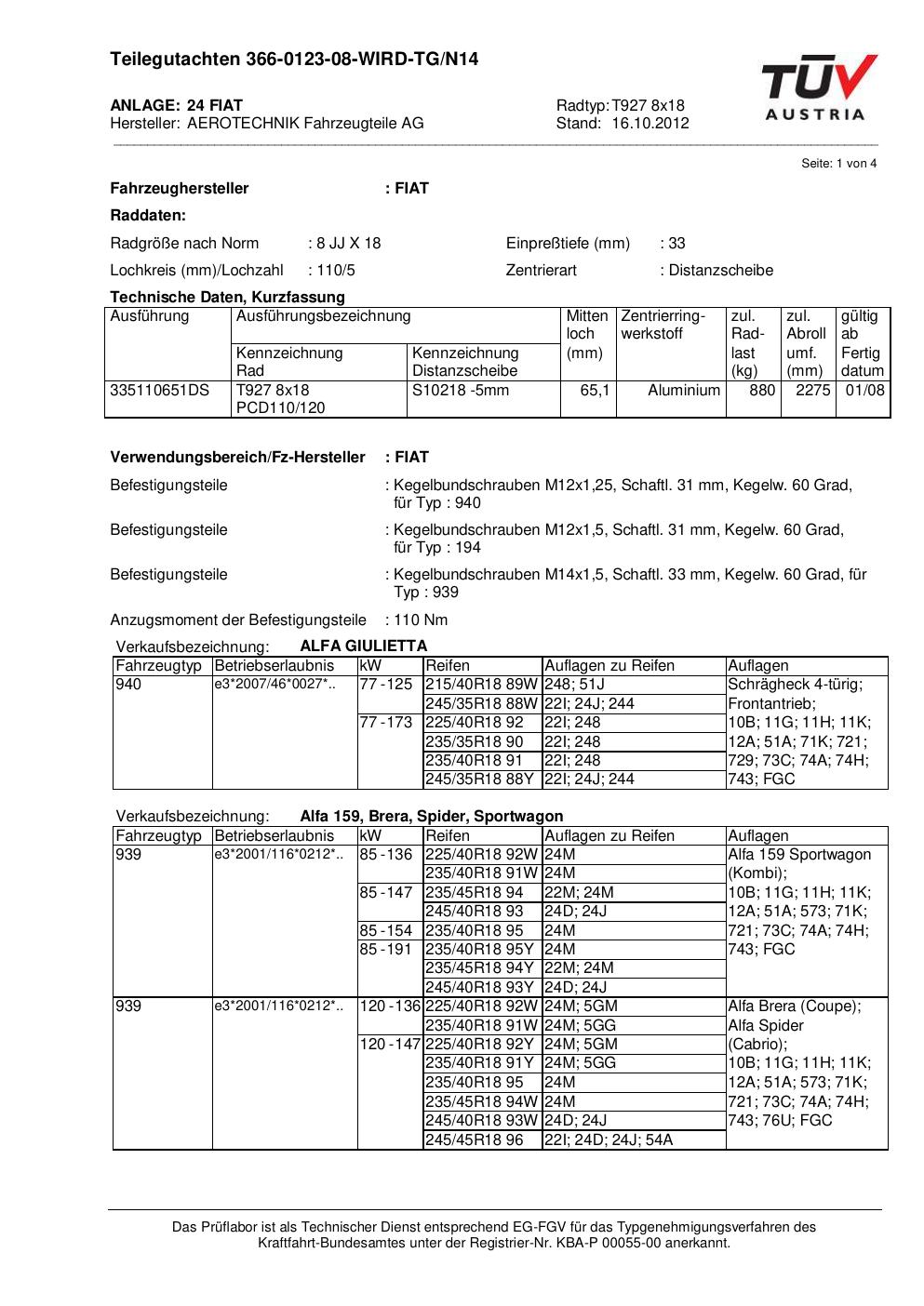 teilegutachten au ATS T927 8x18
