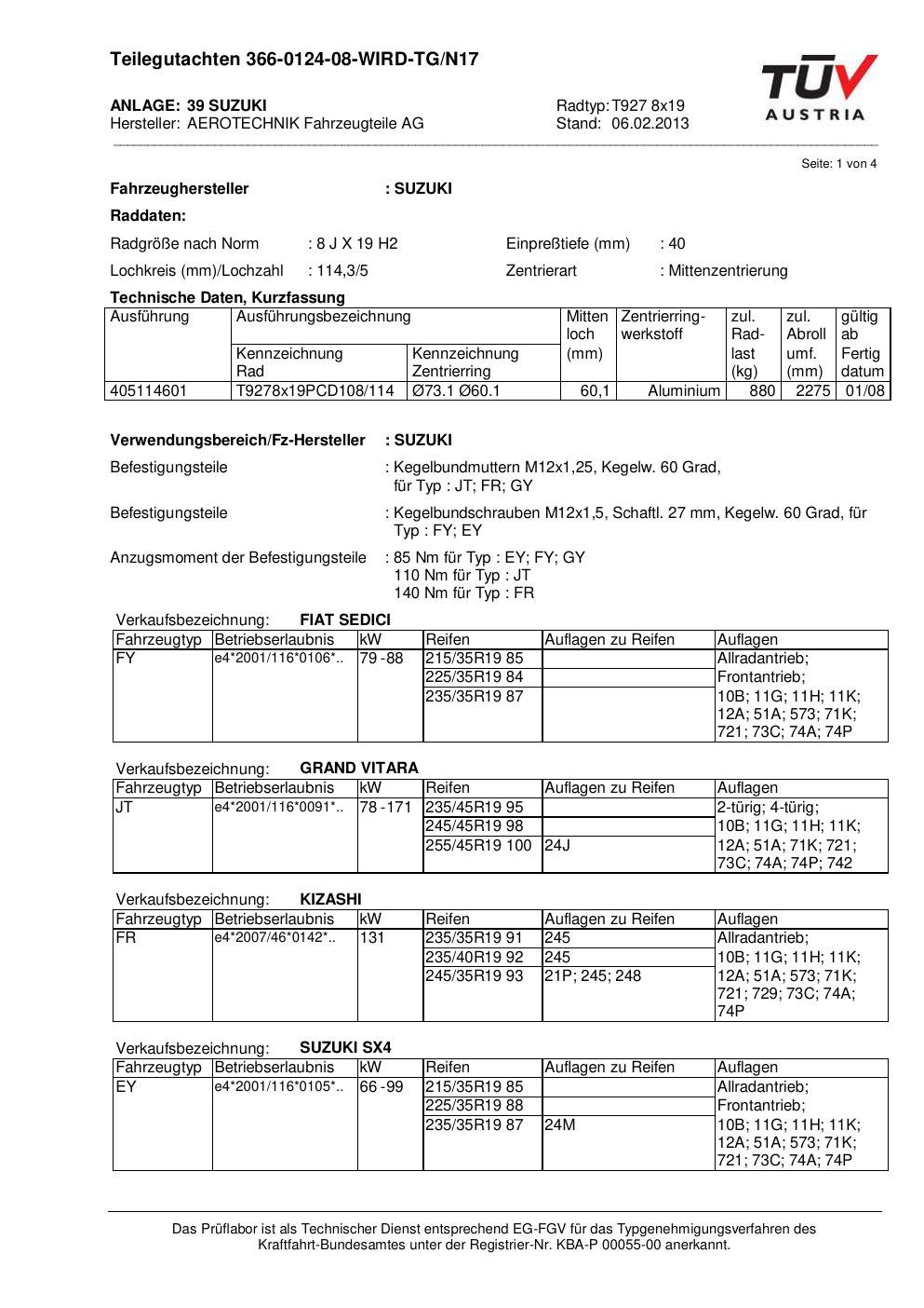 teilegutachten au ATS T927 8x19