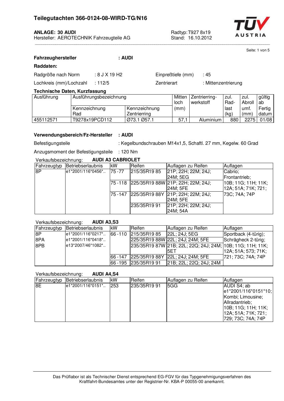 teilegutachten au ATS T927 8x19