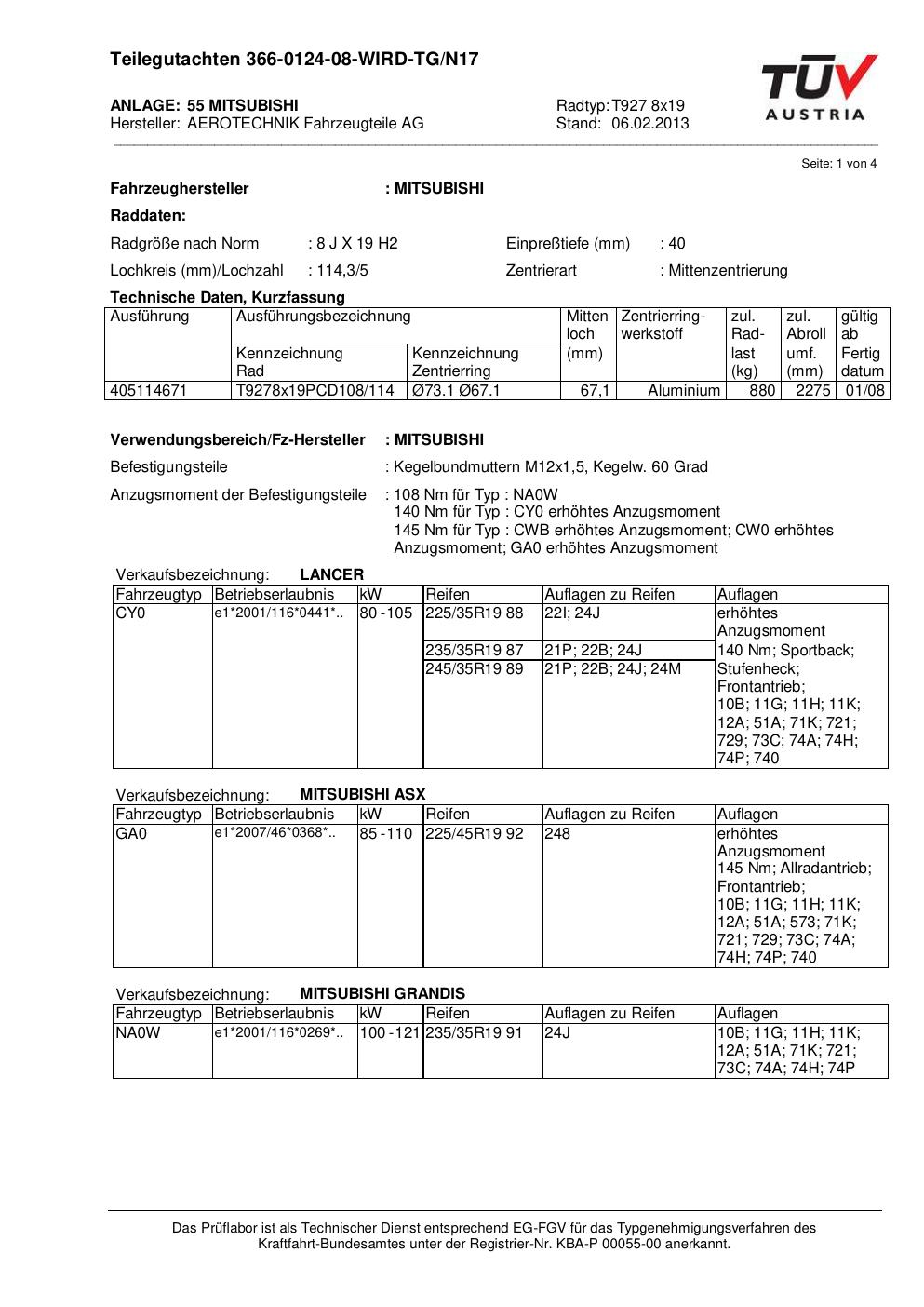 teilegutachten au ATS T927 8x19
