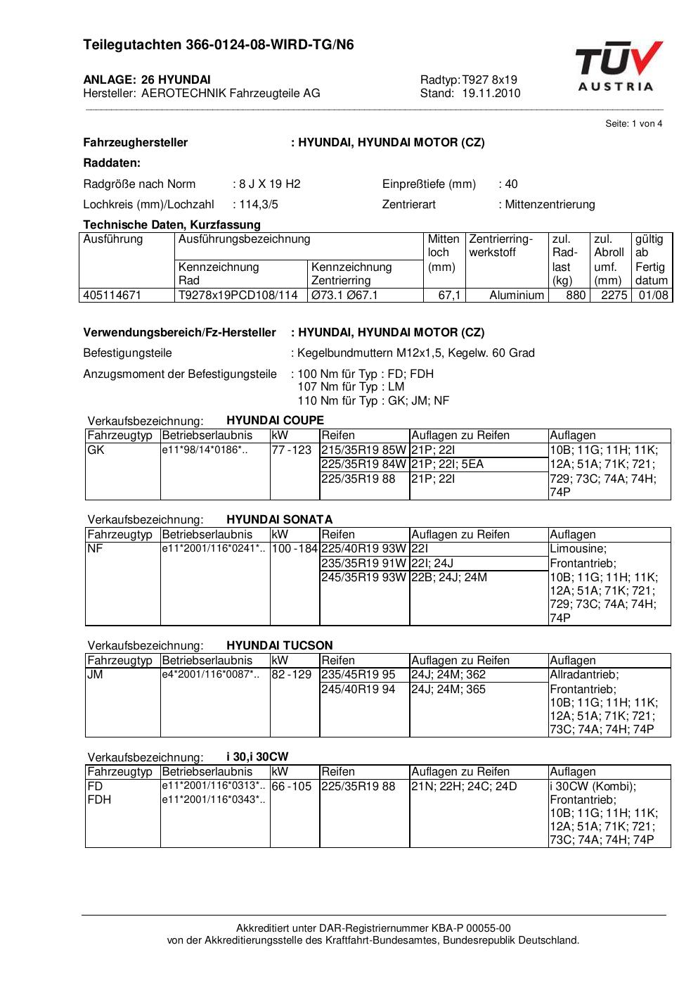 Dieses Gutachten (teilegutachten) bezieht sich auf die Alufelge ATS T927 8x19 in der Ausführung 8Jx19 ET 0, Mittenloch 0 mm . Im PDF findest du typischerweise zulässige Reifengrößen, Auflagen/Anbauhinweise und – je nach Dokument – Hinweise zur Eintragung.