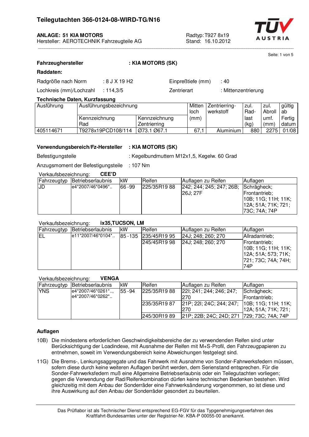 Dieses Gutachten (teilegutachten) bezieht sich auf die Alufelge ATS T927 8x19 in der Ausführung 8Jx19 ET 0, Mittenloch 0 mm . Im PDF findest du typischerweise zulässige Reifengrößen, Auflagen/Anbauhinweise und – je nach Dokument – Hinweise zur Eintragung.