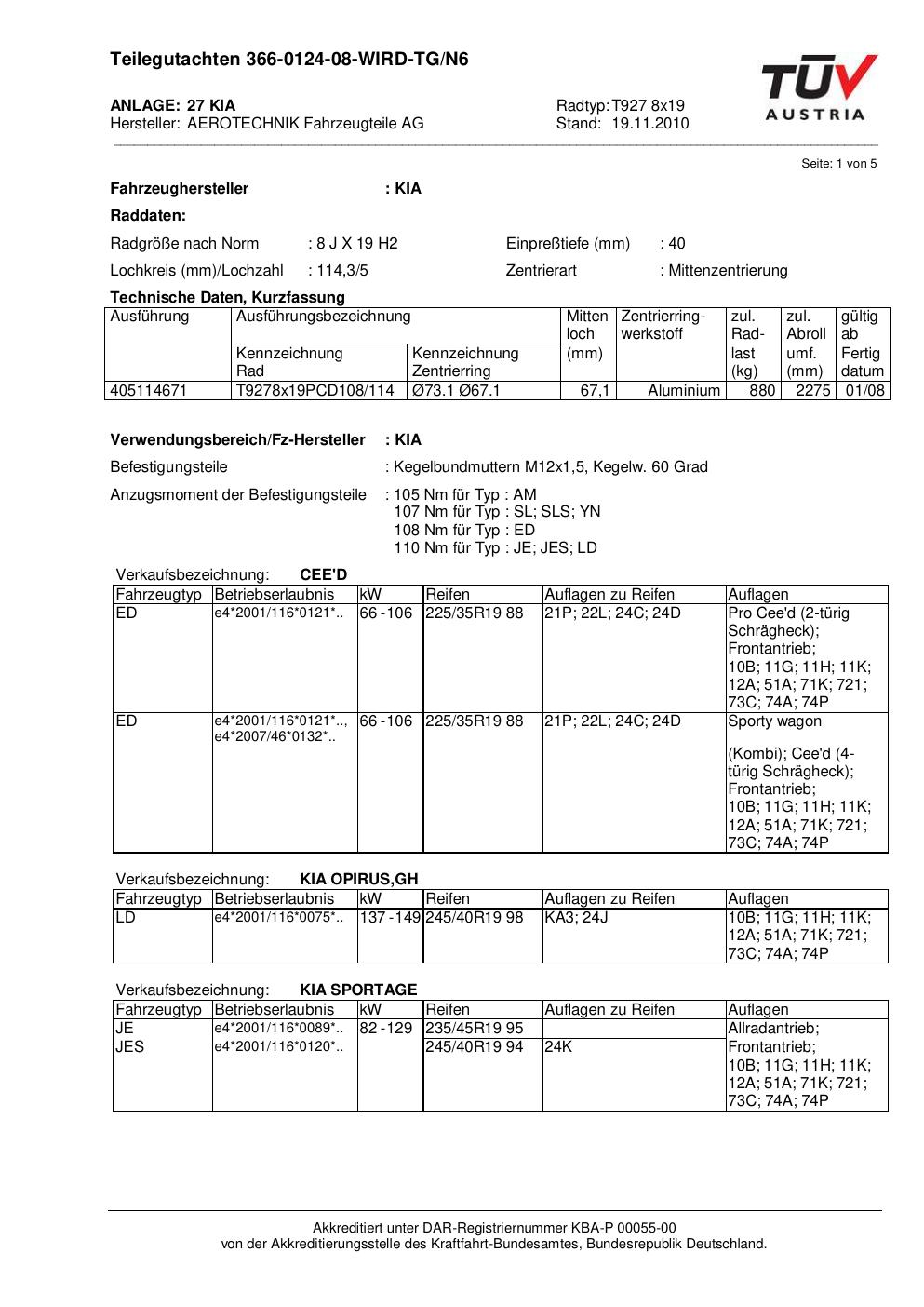 Dieses Gutachten (teilegutachten) bezieht sich auf die Alufelge ATS T927 8x19 in der Ausführung 8Jx19 ET 0, Mittenloch 0 mm . Im PDF findest du typischerweise zulässige Reifengrößen, Auflagen/Anbauhinweise und – je nach Dokument – Hinweise zur Eintragung.