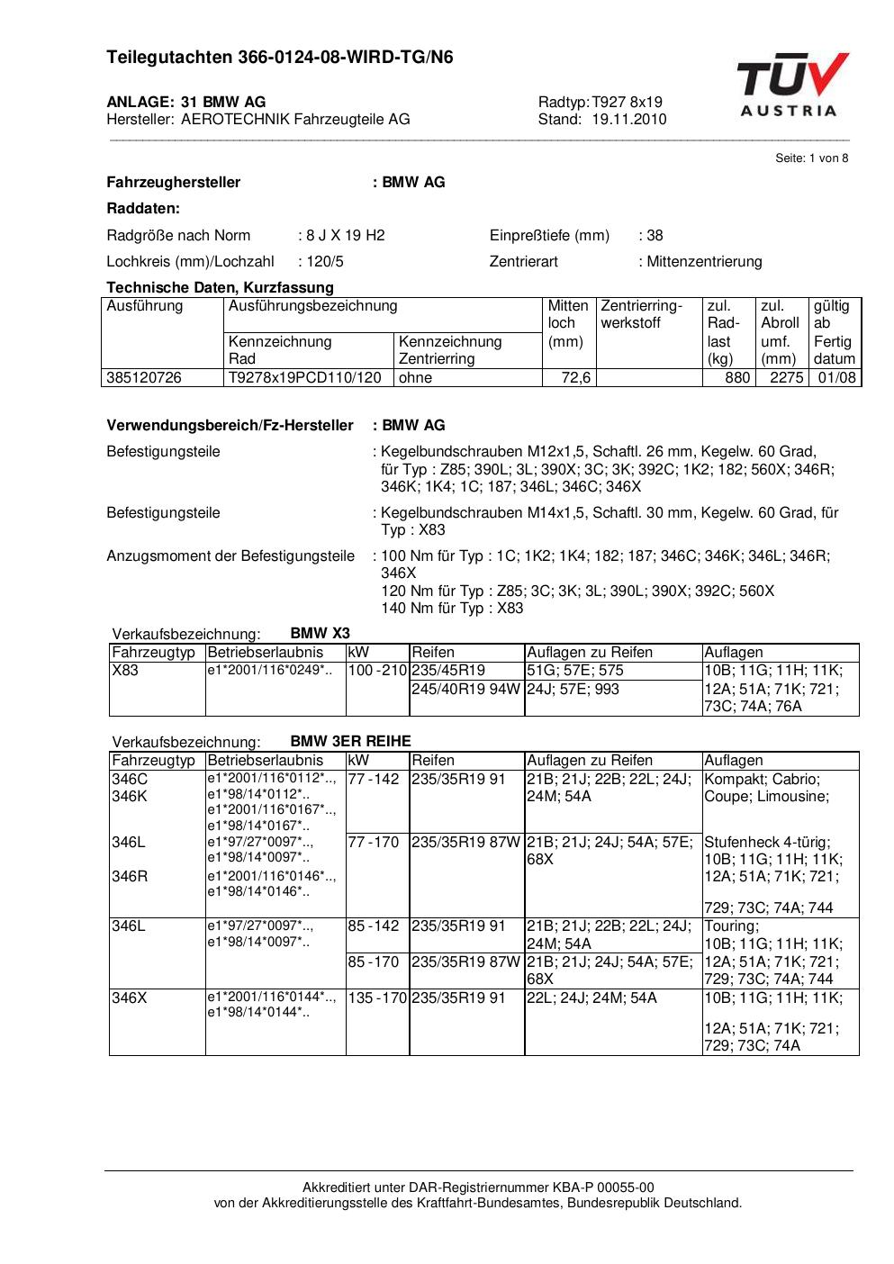 teilegutachten au ATS T927 8x19