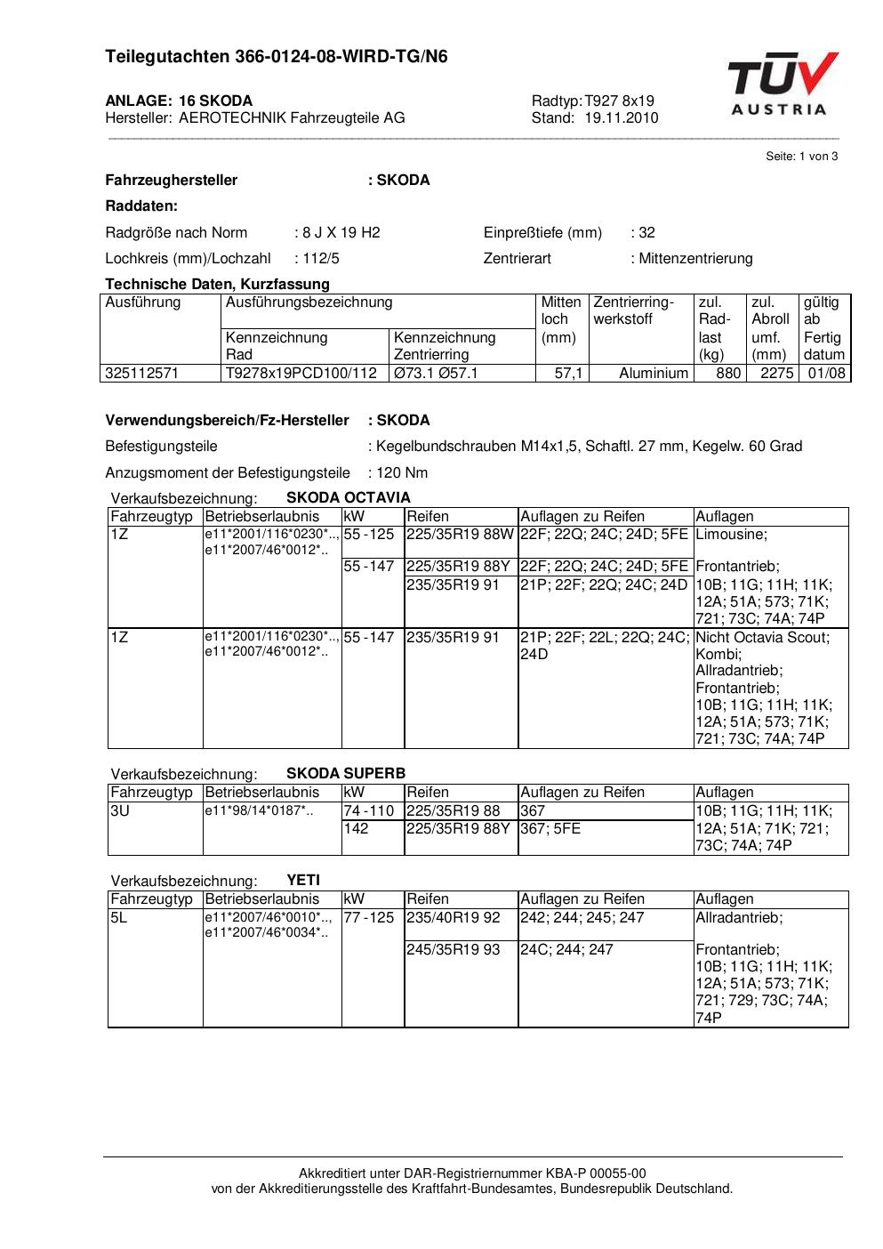 teilegutachten au ATS T927 8x19