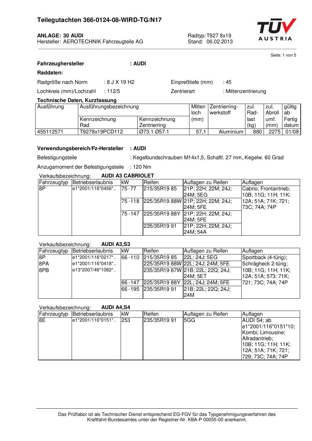 teilegutachten au ATS T927 8x19
