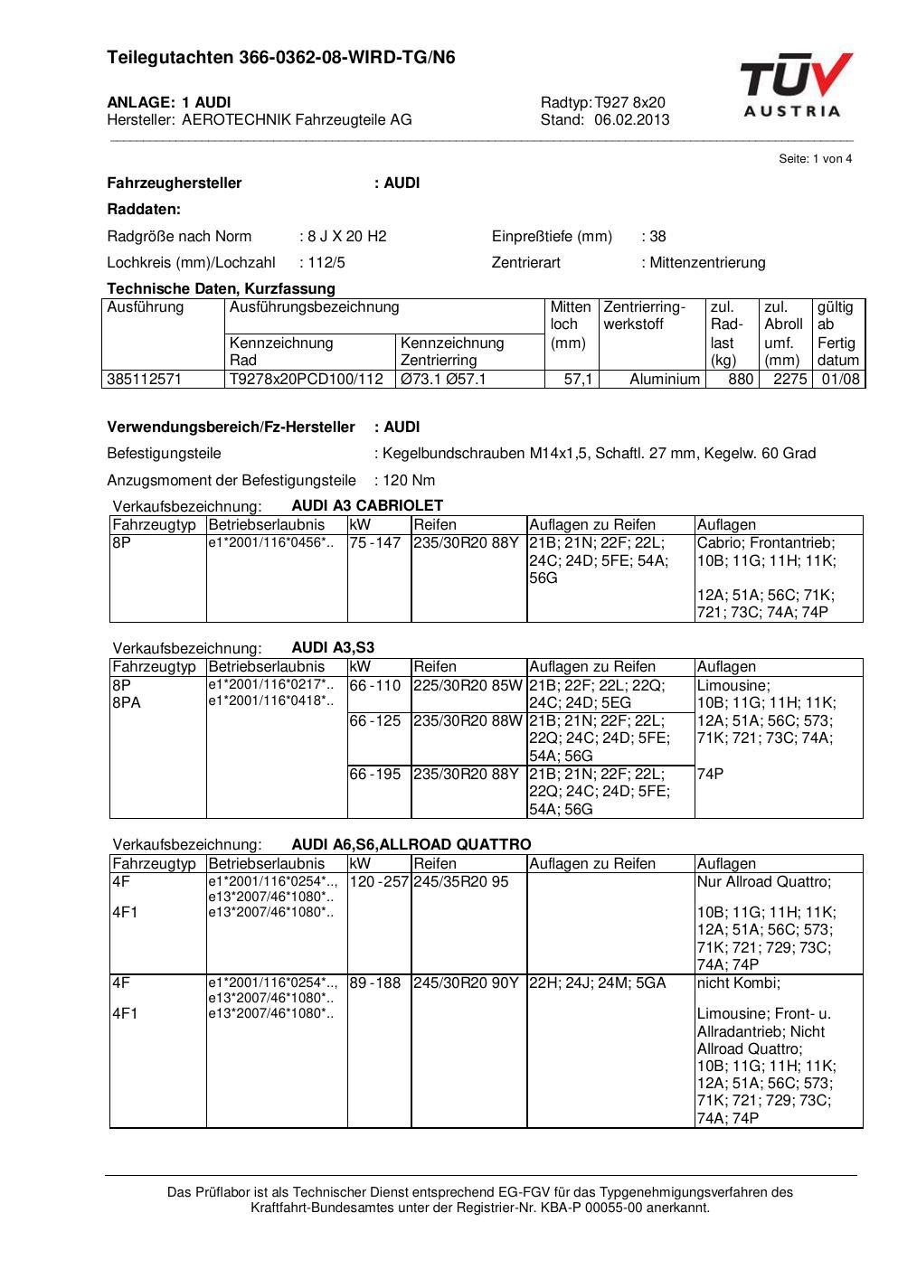 teilegutachten au ATS T927 8x20