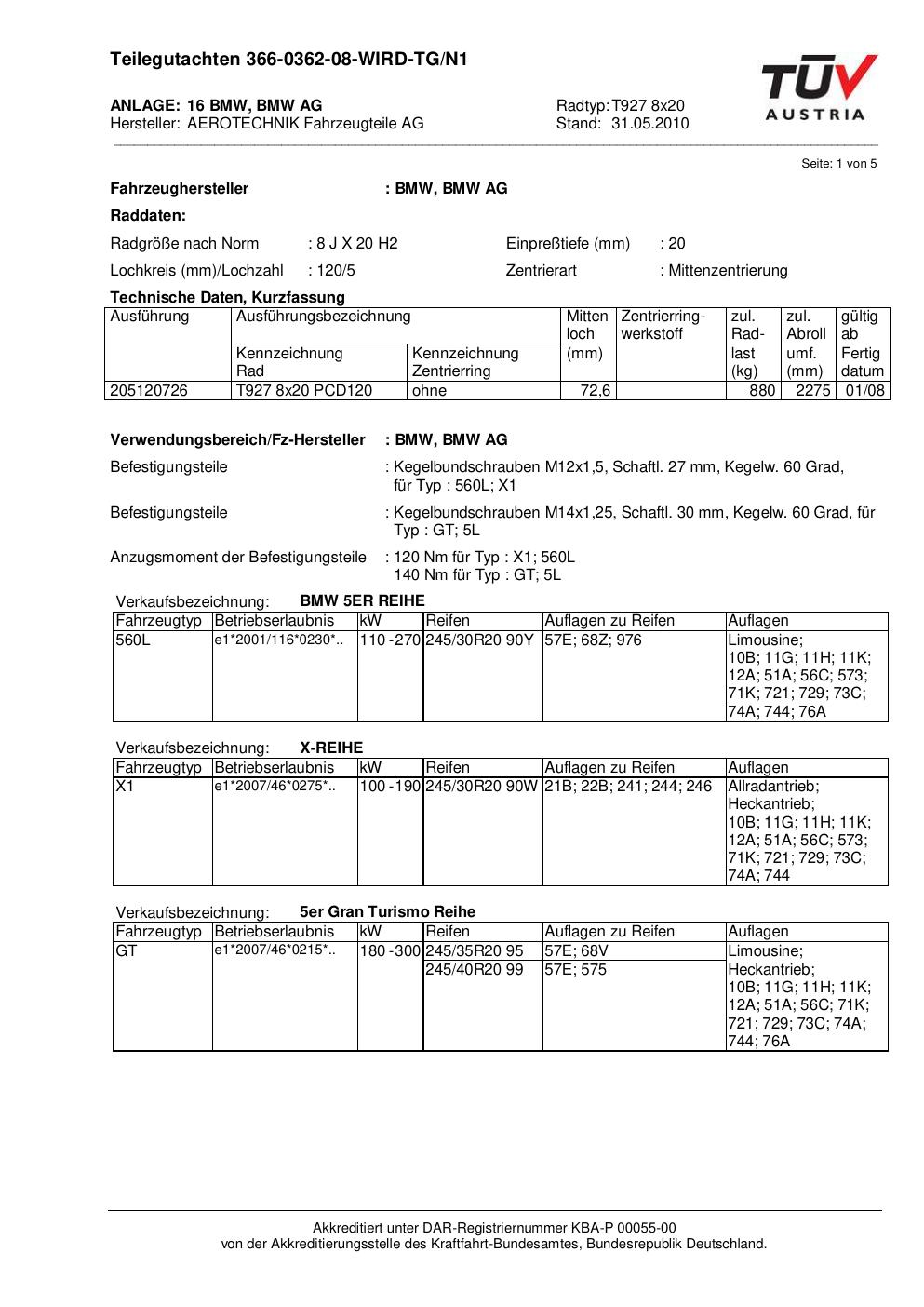 teilegutachten au ATS T927 8x20