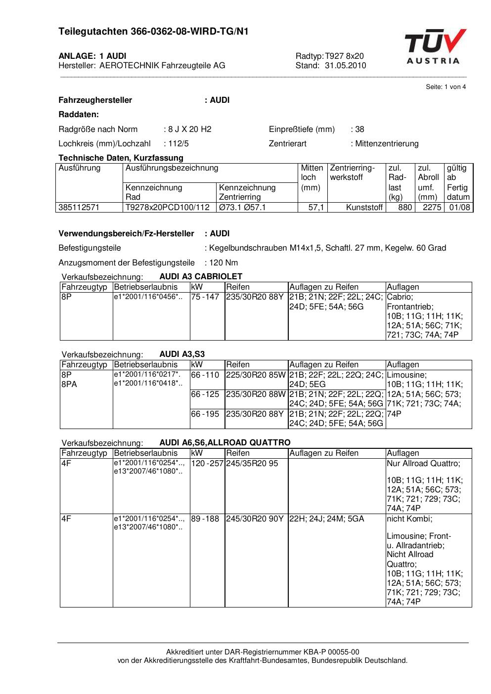 teilegutachten au ATS T927 8x20