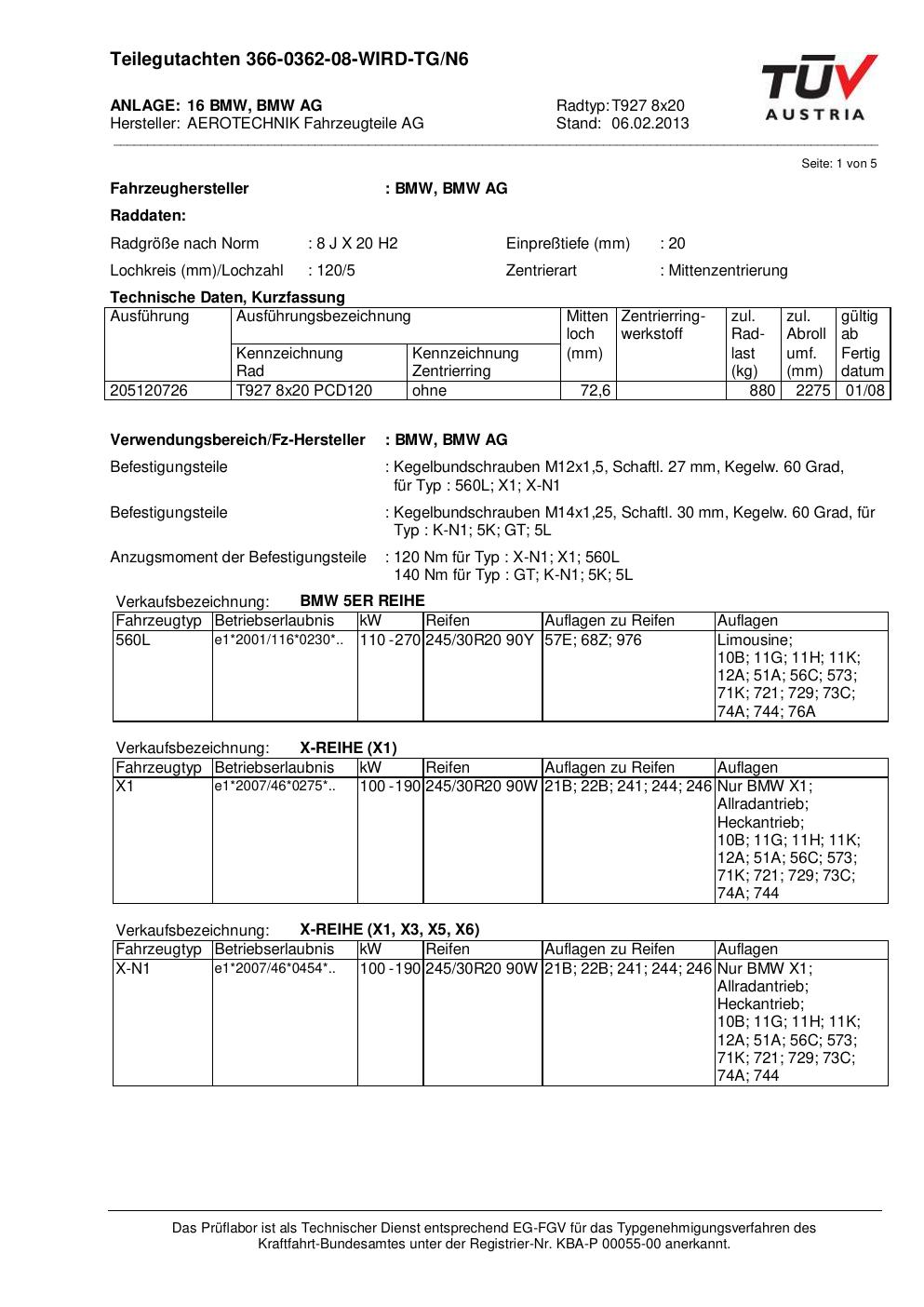 Dieses Gutachten (teilegutachten) bezieht sich auf die Alufelge ATS T927 8x20 in der Ausführung 8Jx2 ET 0, Mittenloch 0 mm . Im PDF findest du typischerweise zulässige Reifengrößen, Auflagen/Anbauhinweise und – je nach Dokument – Hinweise zur Eintragung.