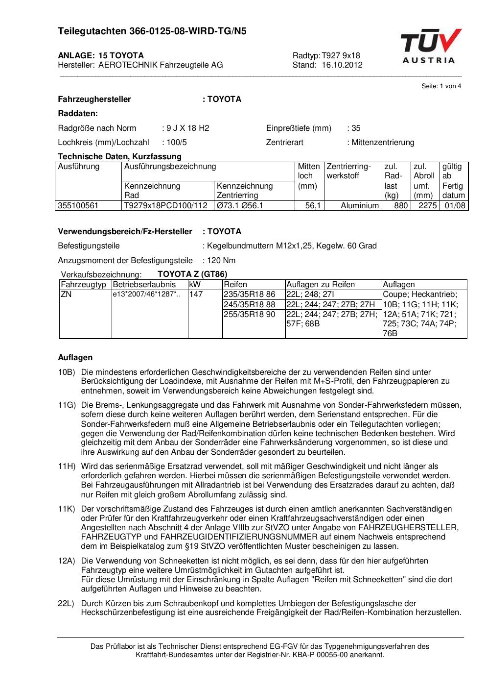 Dieses Gutachten (teilegutachten) bezieht sich auf die Alufelge ATS T927 9x18 in der Ausführung 9Jx18 ET 0, Mittenloch 0 mm . Im PDF findest du typischerweise zulässige Reifengrößen, Auflagen/Anbauhinweise und – je nach Dokument – Hinweise zur Eintragung.