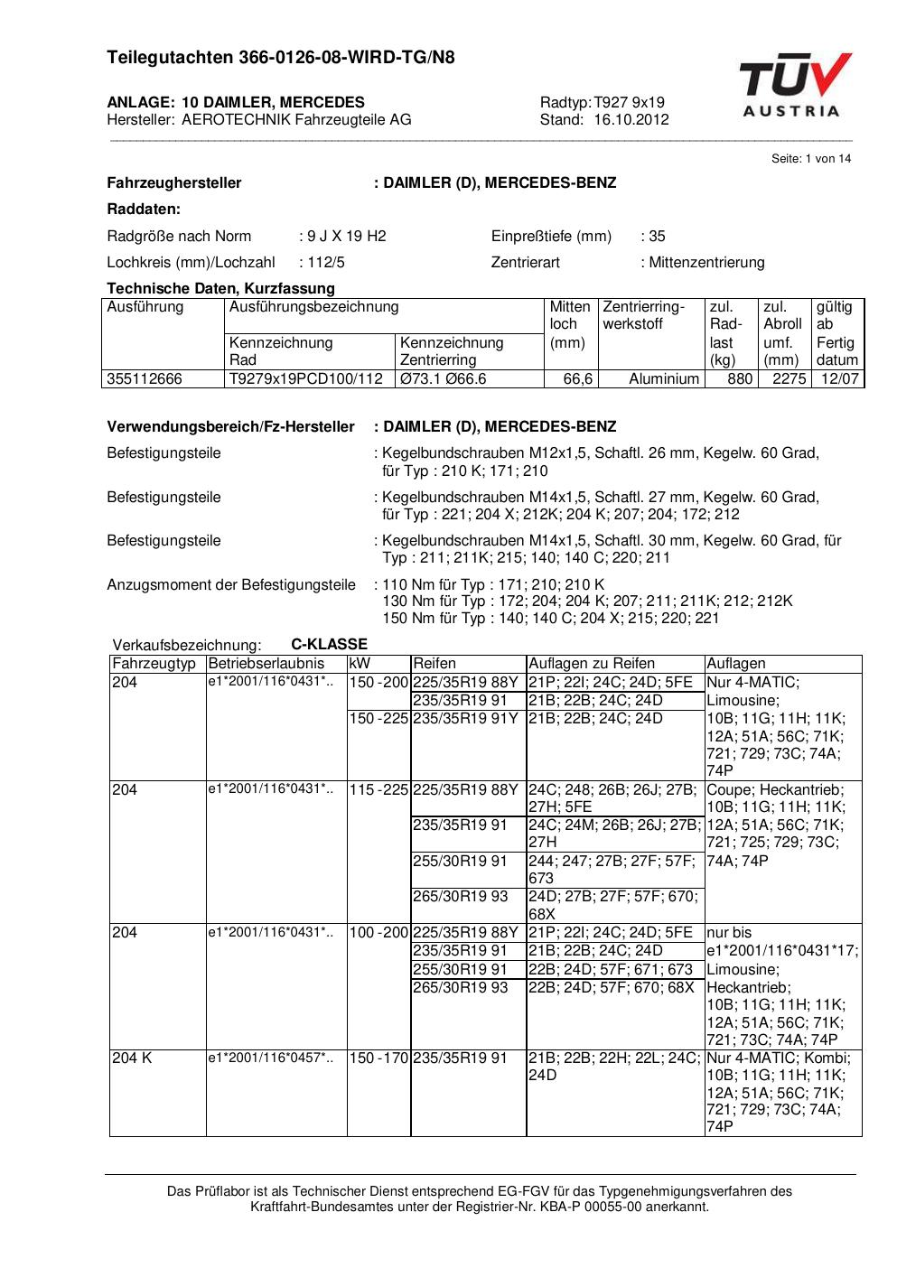 Dieses Gutachten (teilegutachten) bezieht sich auf die Alufelge ATS T927 9x19 in der Ausführung 9Jx19 ET 0, Mittenloch 0 mm . Im PDF findest du typischerweise zulässige Reifengrößen, Auflagen/Anbauhinweise und – je nach Dokument – Hinweise zur Eintragung.