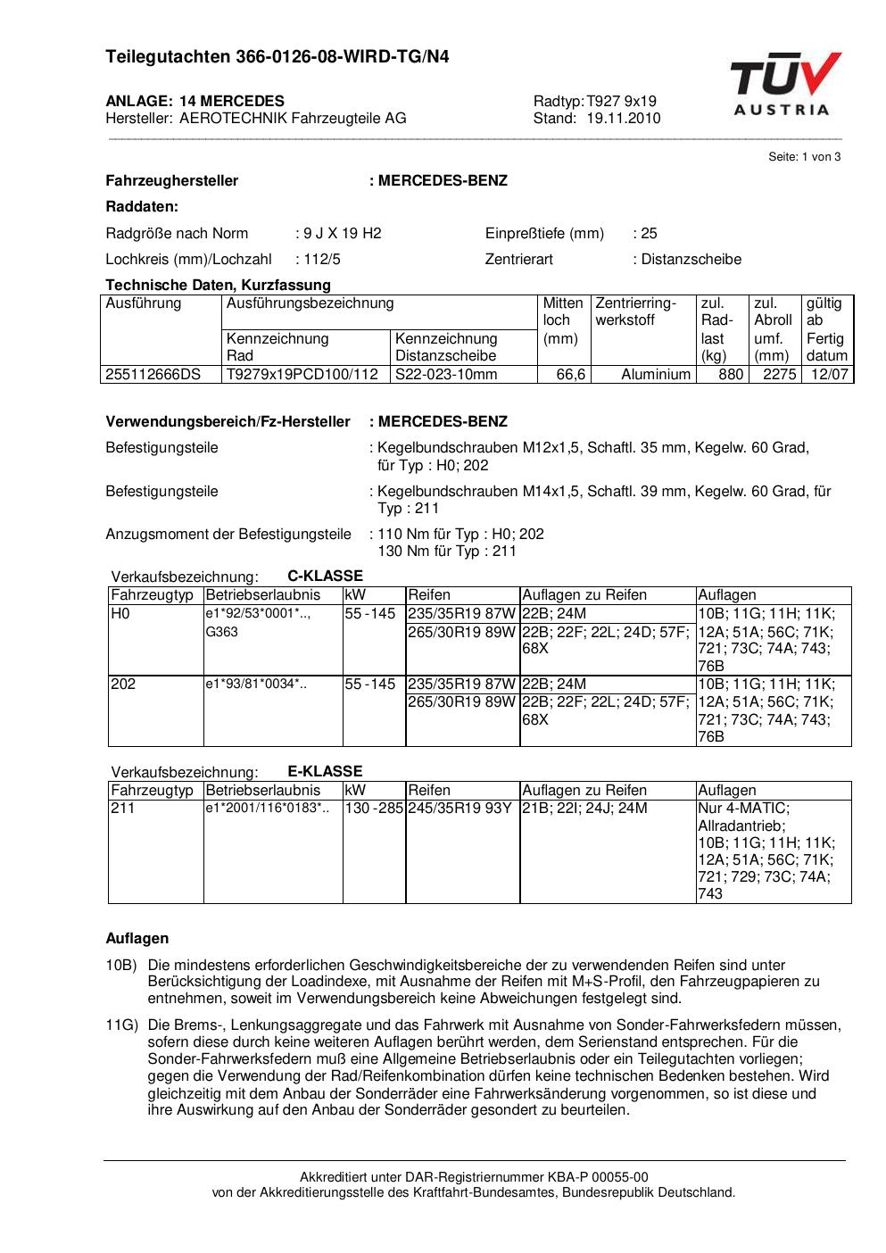 Dieses Gutachten (teilegutachten) bezieht sich auf die Alufelge ATS T927 9x19 in der Ausführung 9Jx19 ET 0, Mittenloch 0 mm . Im PDF findest du typischerweise zulässige Reifengrößen, Auflagen/Anbauhinweise und – je nach Dokument – Hinweise zur Eintragung.