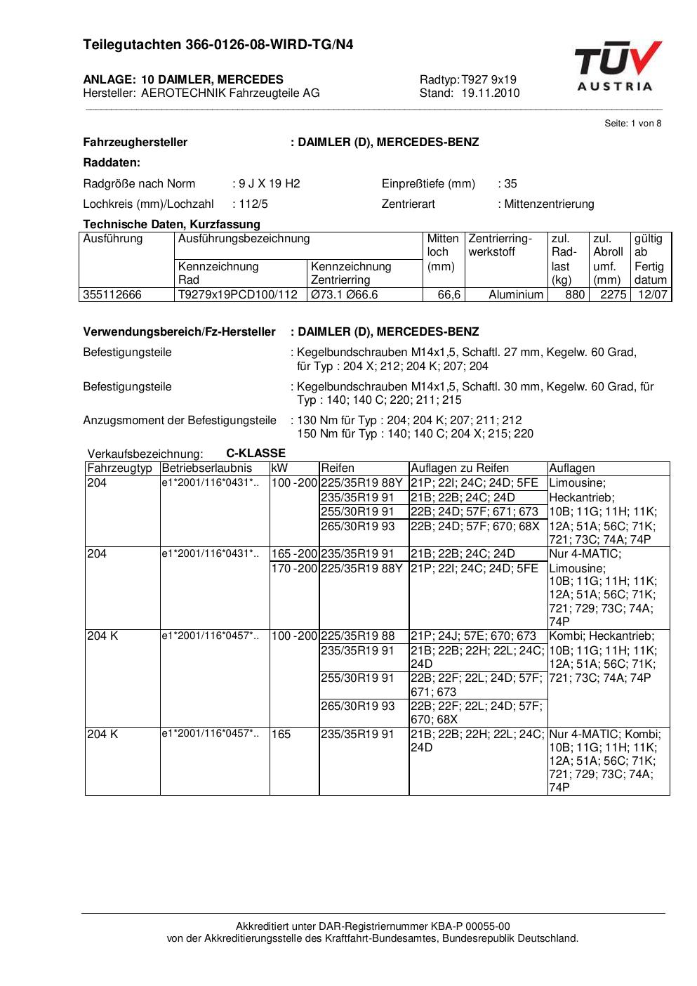 Dieses Gutachten (teilegutachten) bezieht sich auf die Alufelge ATS T927 9x19 in der Ausführung 9Jx19 ET 0, Mittenloch 0 mm . Im PDF findest du typischerweise zulässige Reifengrößen, Auflagen/Anbauhinweise und – je nach Dokument – Hinweise zur Eintragung.