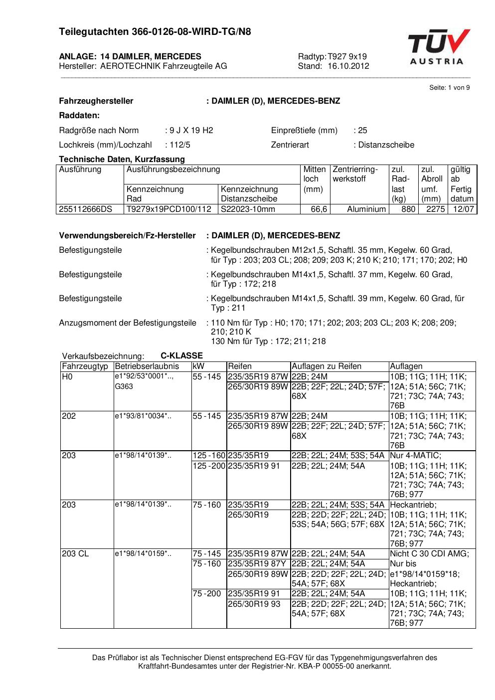 Dieses Gutachten (teilegutachten) bezieht sich auf die Alufelge ATS T927 9x19 in der Ausführung 9Jx19 ET 0, Mittenloch 0 mm . Im PDF findest du typischerweise zulässige Reifengrößen, Auflagen/Anbauhinweise und – je nach Dokument – Hinweise zur Eintragung.