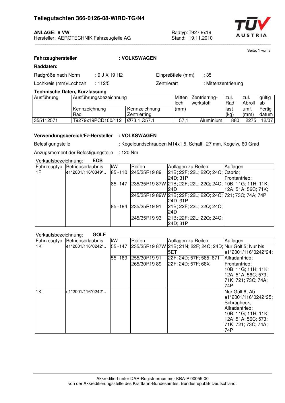 Dieses Gutachten (teilegutachten) bezieht sich auf die Alufelge ATS T927 9x19 in der Ausführung 9Jx19 ET 0, Mittenloch 0 mm . Im PDF findest du typischerweise zulässige Reifengrößen, Auflagen/Anbauhinweise und – je nach Dokument – Hinweise zur Eintragung.