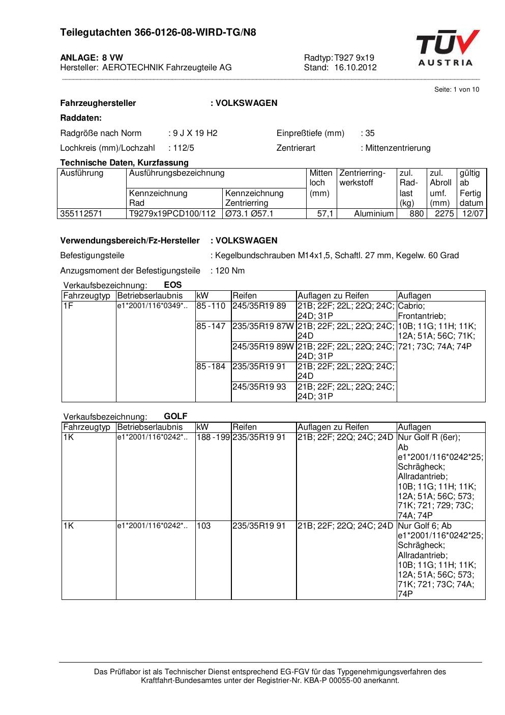 Dieses Gutachten (teilegutachten) bezieht sich auf die Alufelge ATS T927 9x19 in der Ausführung 9Jx19 ET 0, Mittenloch 0 mm . Im PDF findest du typischerweise zulässige Reifengrößen, Auflagen/Anbauhinweise und – je nach Dokument – Hinweise zur Eintragung.