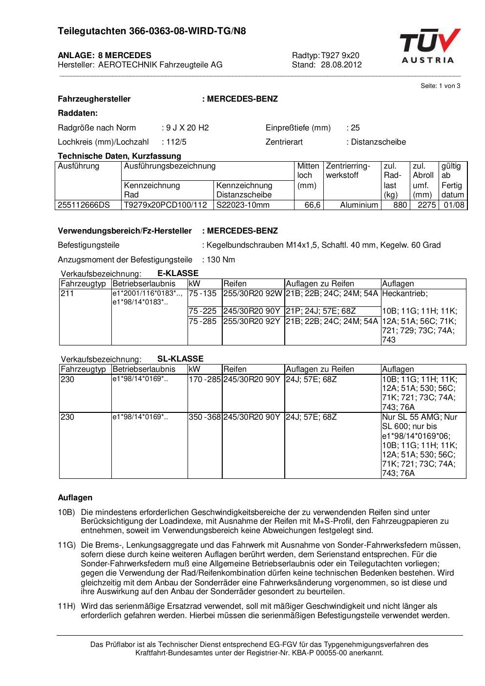 Dieses Gutachten (teilegutachten) bezieht sich auf die Alufelge ATS T927 9x20 in der Ausführung 9Jx2 ET 0, Mittenloch 0 mm . Im PDF findest du typischerweise zulässige Reifengrößen, Auflagen/Anbauhinweise und – je nach Dokument – Hinweise zur Eintragung.