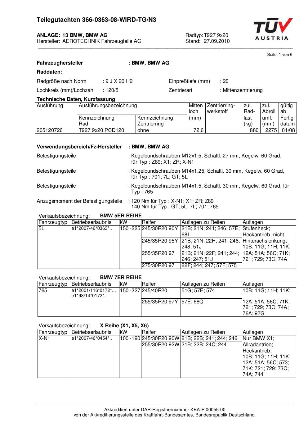 Dieses Gutachten (teilegutachten) bezieht sich auf die Alufelge ATS T927 9x20 in der Ausführung 9Jx2 ET 0, Mittenloch 0 mm . Im PDF findest du typischerweise zulässige Reifengrößen, Auflagen/Anbauhinweise und – je nach Dokument – Hinweise zur Eintragung.