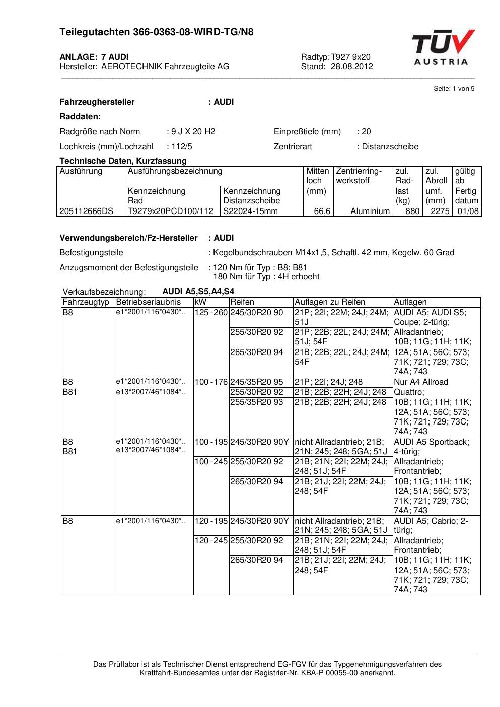 teilegutachten au ATS T927 9x20