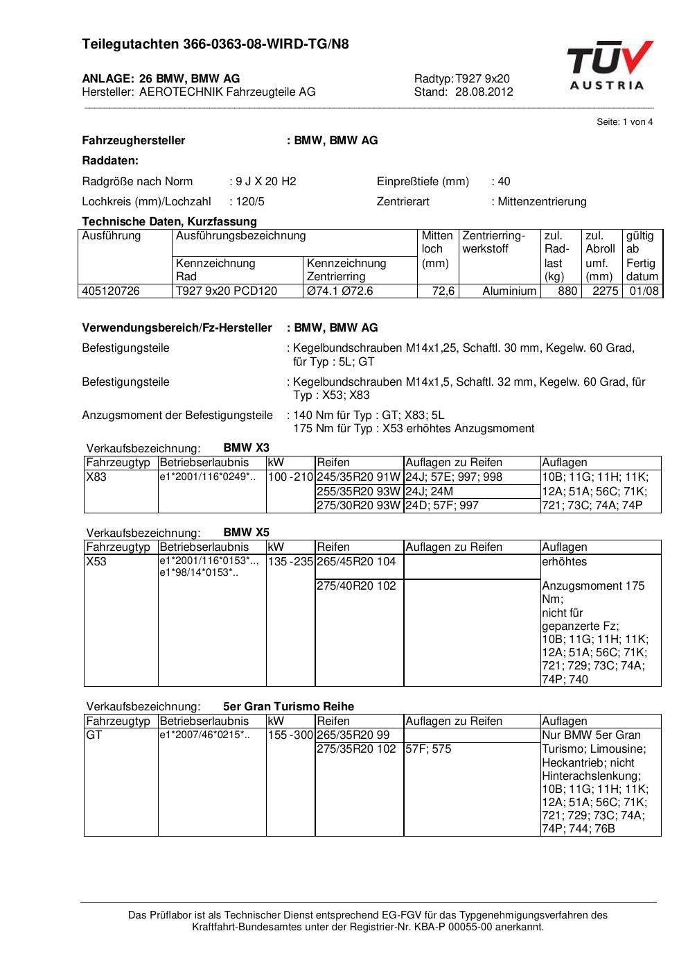 teilegutachten au ATS T927 9x20