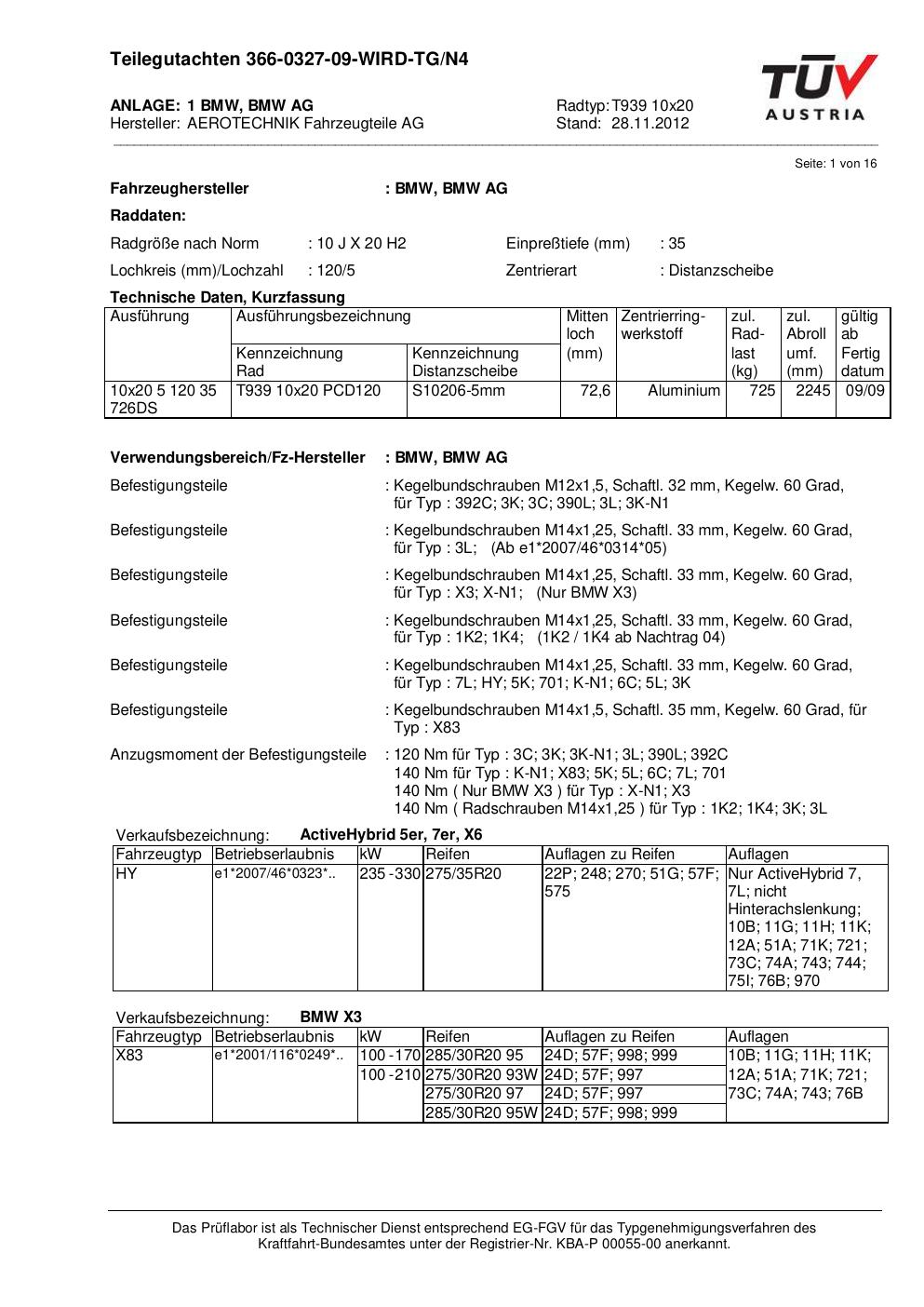 teilegutachten au ATS T939 10x20