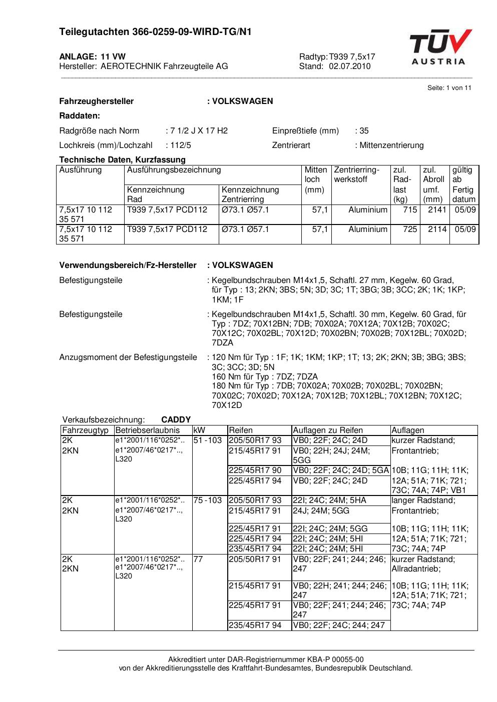 teilegutachten au ATS T939 7