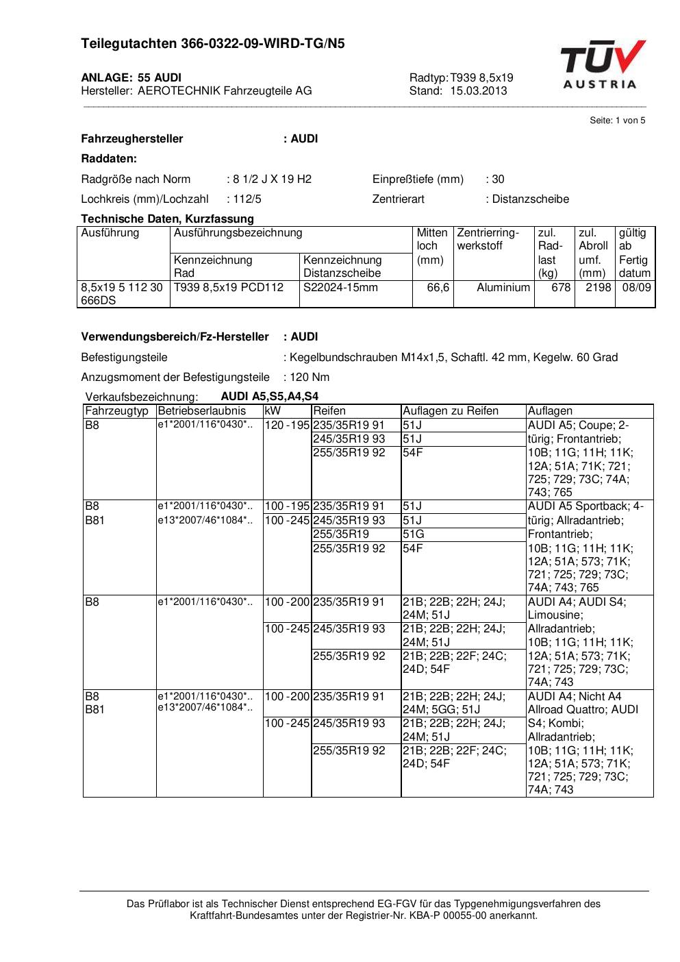 teilegutachten au ATS T939 8
