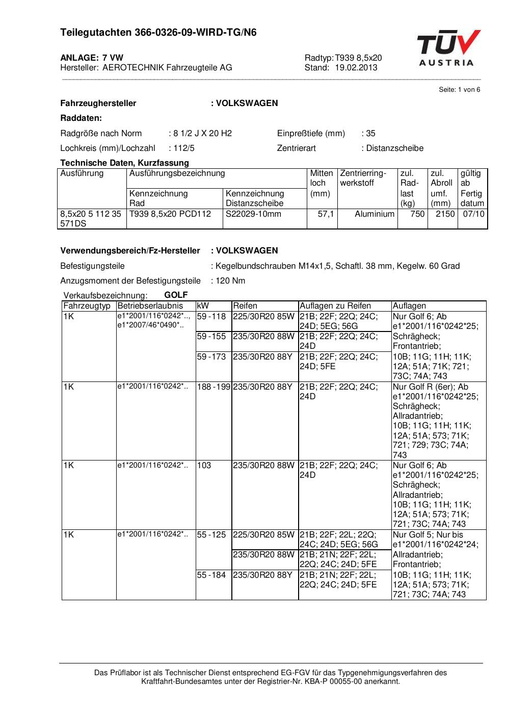 Dieses Gutachten (teilegutachten) bezieht sich auf die Alufelge ATS T939 8 in der Ausführung 8.5Jx2 ET 0, Mittenloch 0 mm . Im PDF findest du typischerweise zulässige Reifengrößen, Auflagen/Anbauhinweise und – je nach Dokument – Hinweise zur Eintragung.