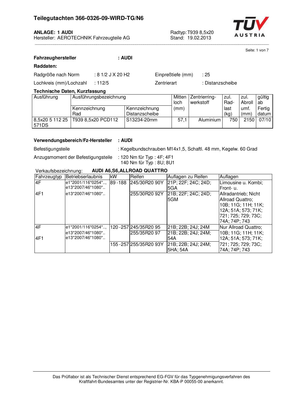 teilegutachten au ATS T939 8