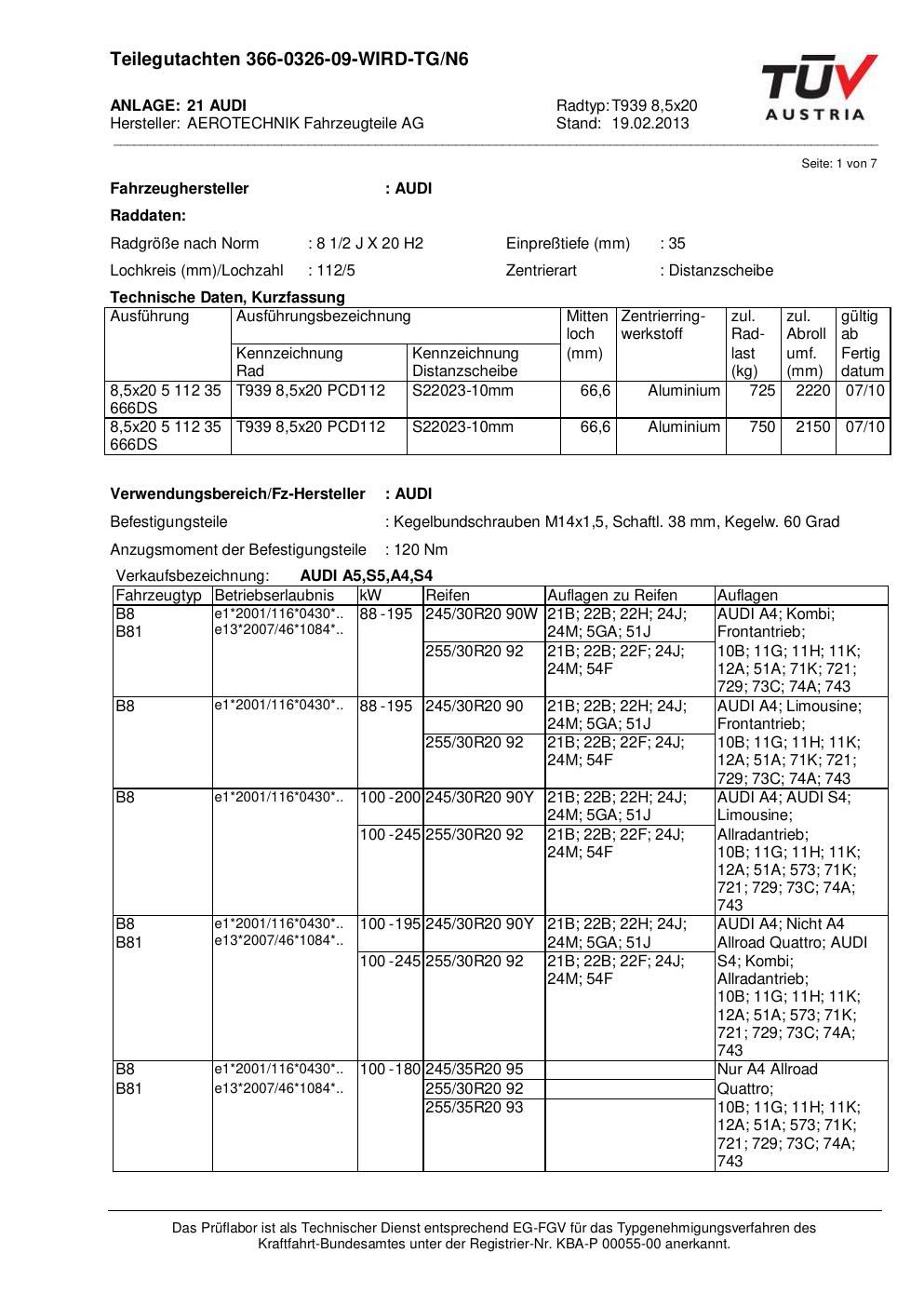 teilegutachten au ATS T939 8