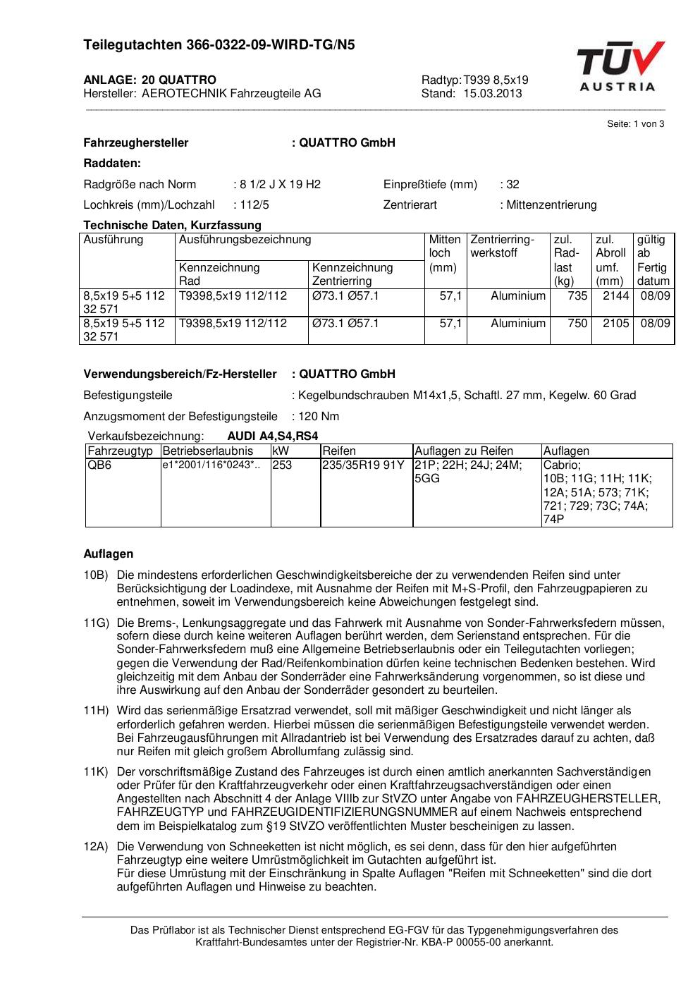 teilegutachten au ATS T939 8