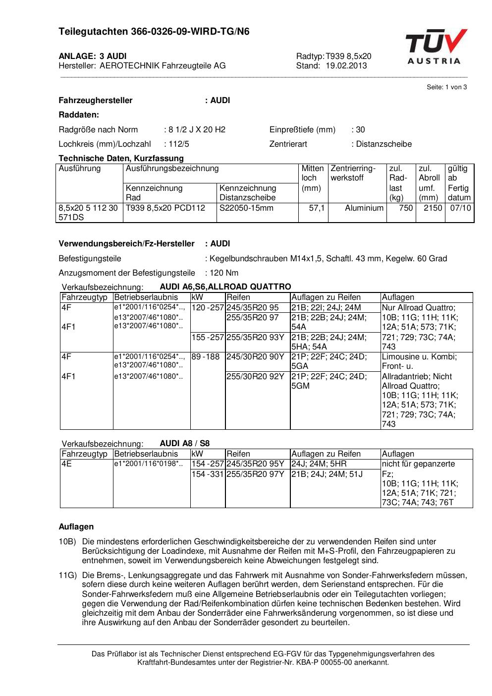 teilegutachten au ATS T939 8