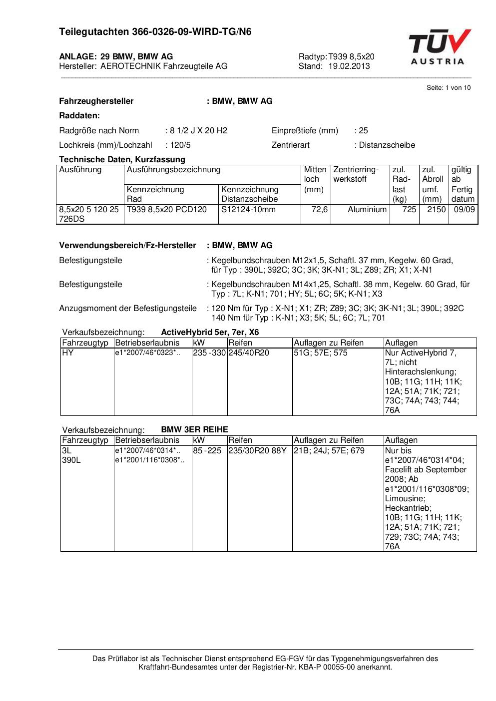 Dieses Gutachten (teilegutachten) bezieht sich auf die Alufelge ATS T939 8 in der Ausführung 8.5Jx2 ET 0, Mittenloch 0 mm . Im PDF findest du typischerweise zulässige Reifengrößen, Auflagen/Anbauhinweise und – je nach Dokument – Hinweise zur Eintragung.