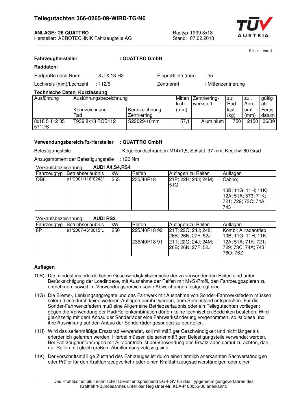teilegutachten au ATS T939 8x18