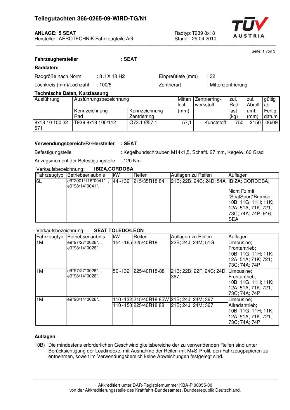 Dieses Gutachten (teilegutachten) bezieht sich auf die Alufelge ATS T939 8x18 in der Ausführung 8Jx18 ET 0, Mittenloch 0 mm . Im PDF findest du typischerweise zulässige Reifengrößen, Auflagen/Anbauhinweise und – je nach Dokument – Hinweise zur Eintragung.