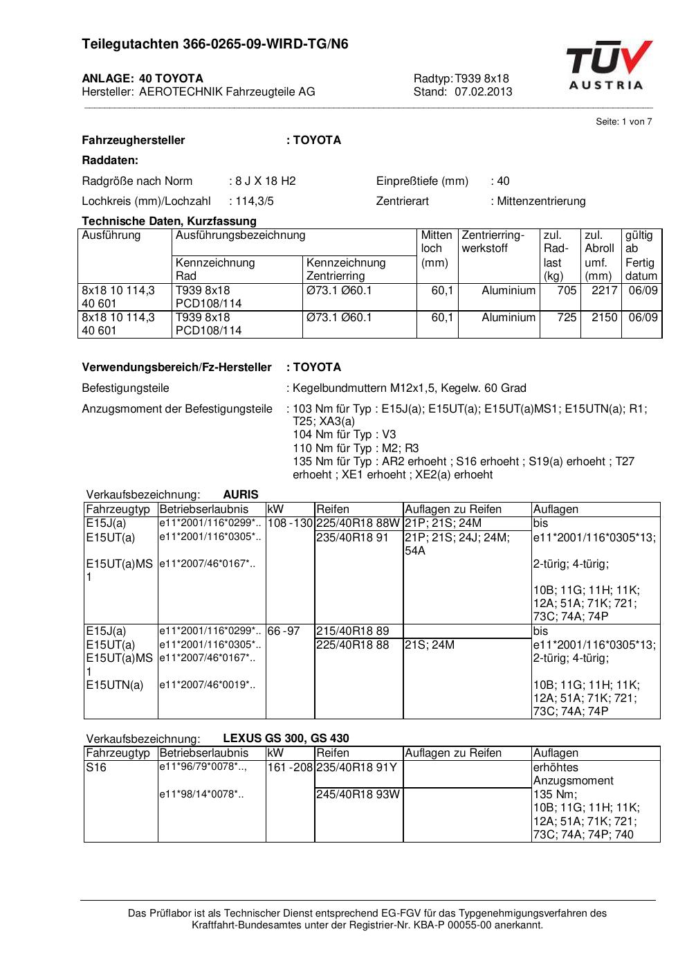 teilegutachten au ATS T939 8x18