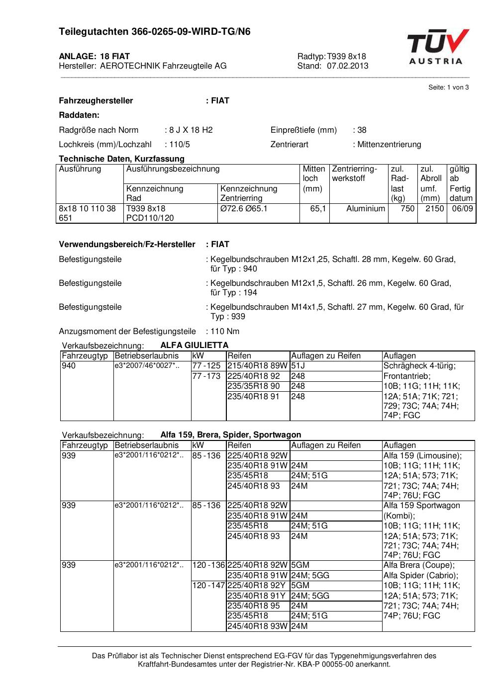 teilegutachten au ATS T939 8x18