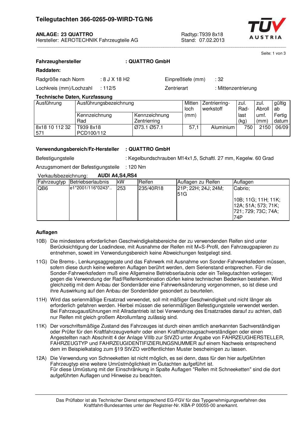 teilegutachten au ATS T939 8x18
