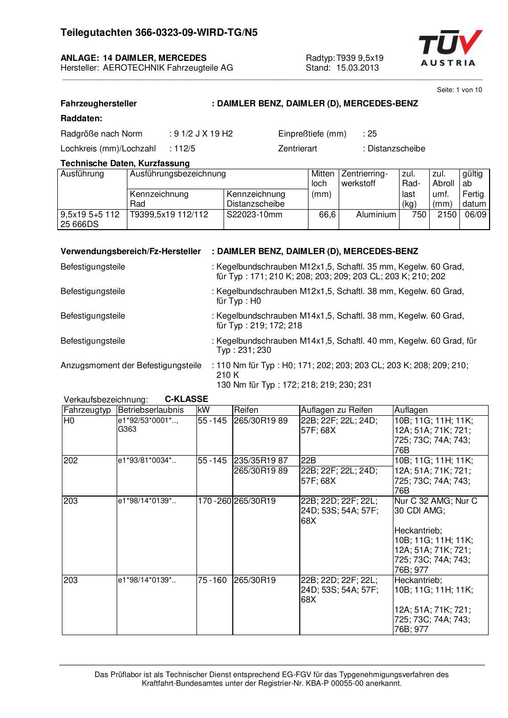 teilegutachten au ATS T939 9