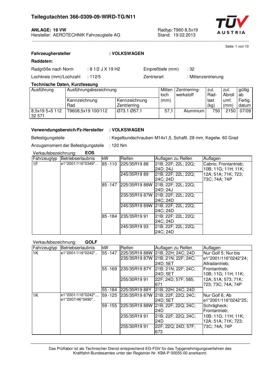 Dieses Gutachten (teilegutachten) bezieht sich auf die Alufelge ATS T960 8 in der Ausführung 8.5Jx19 ET 0, Mittenloch 0 mm . Im PDF findest du typischerweise zulässige Reifengrößen, Auflagen/Anbauhinweise und – je nach Dokument – Hinweise zur Eintragung.