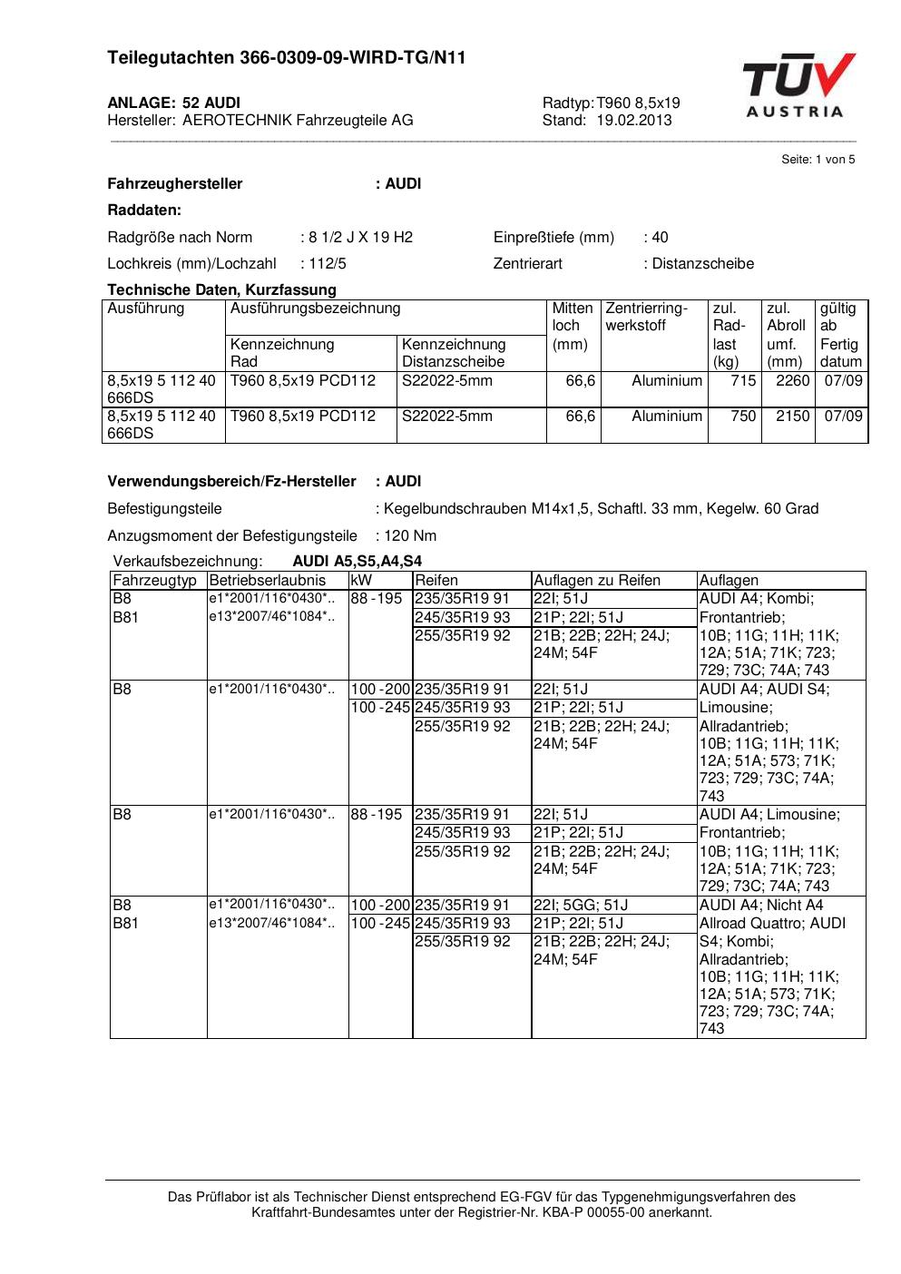 teilegutachten au ATS T960 8
