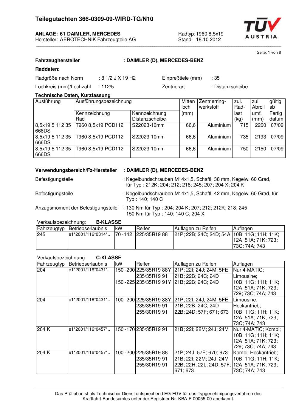 Dieses Gutachten (teilegutachten) bezieht sich auf die Alufelge ATS T960 8 in der Ausführung 8.5Jx19 ET 0, Mittenloch 0 mm . Im PDF findest du typischerweise zulässige Reifengrößen, Auflagen/Anbauhinweise und – je nach Dokument – Hinweise zur Eintragung.