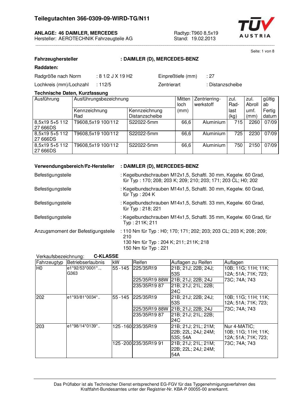 Felgengutachten / teilegutachten für Alufelgen ATS T960 8 (8.5Jx19 ET 0, Mittenloch 0 mm) (Zertifikatsnummer au). Hier kostenlos als PDF herunterladen. Der Download-Link ist 24 Stunden gültig und kann bis zu zwei Mal verwendet werden.