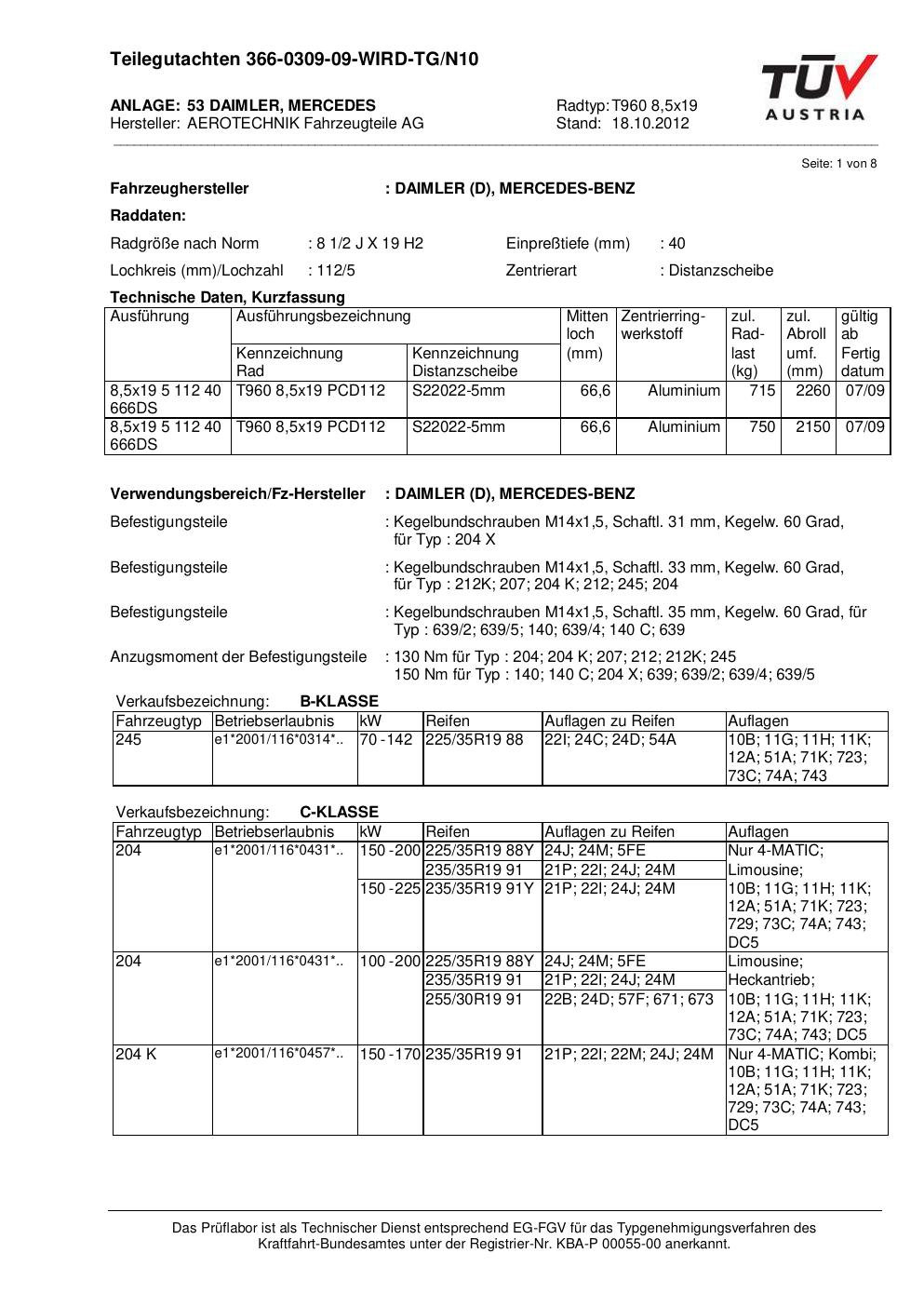 Dieses Gutachten (teilegutachten) bezieht sich auf die Alufelge ATS T960 8 in der Ausführung 8.5Jx19 ET 0, Mittenloch 0 mm . Im PDF findest du typischerweise zulässige Reifengrößen, Auflagen/Anbauhinweise und – je nach Dokument – Hinweise zur Eintragung.