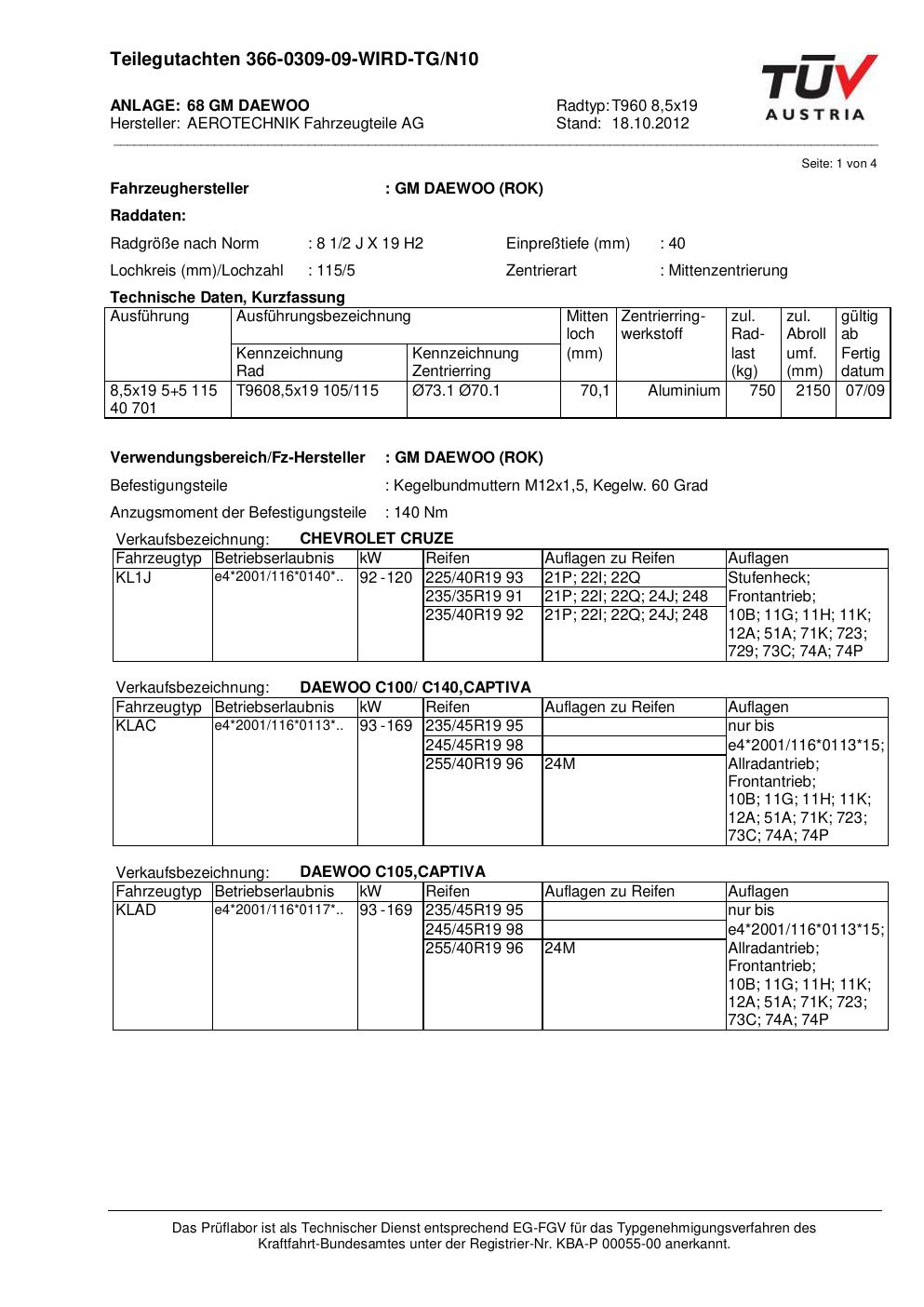 Dieses Gutachten (teilegutachten) bezieht sich auf die Alufelge ATS T960 8 in der Ausführung 8.5Jx19 ET 0, Mittenloch 0 mm . Im PDF findest du typischerweise zulässige Reifengrößen, Auflagen/Anbauhinweise und – je nach Dokument – Hinweise zur Eintragung.